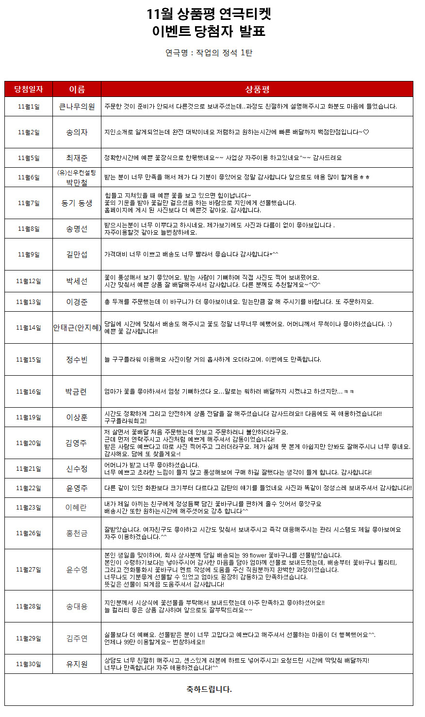 title : 2018년 11월 상품평 연극티켓 이벤트 [당첨자 발표]