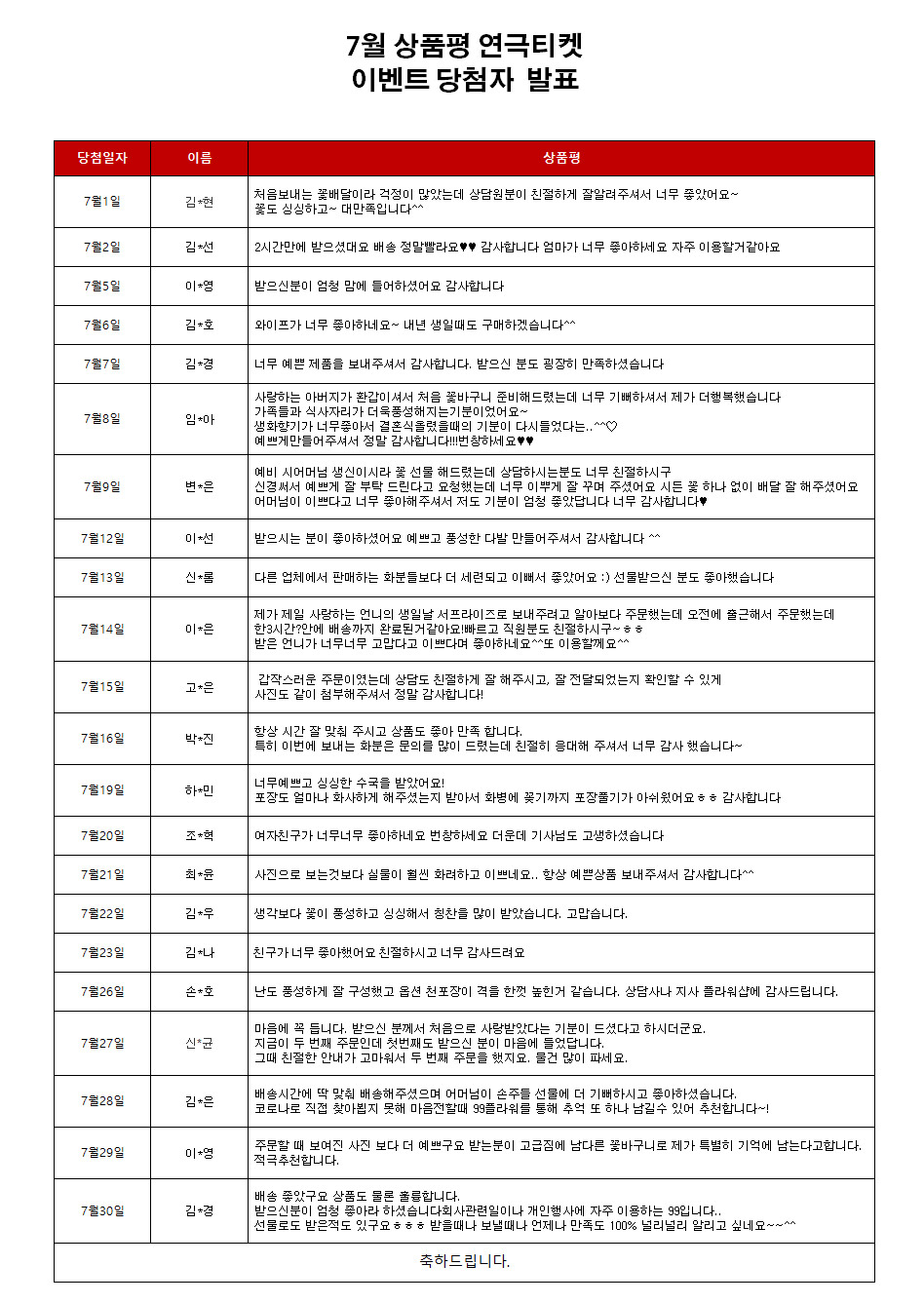 title : 2021년 7월 상품평 연극티켓 이벤트 [당첨자발표]
