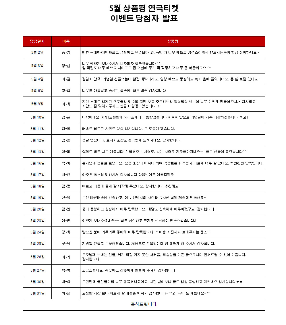 title : 2022년 5월 상품평 연극티켓 이벤트 [당첨자 발표]