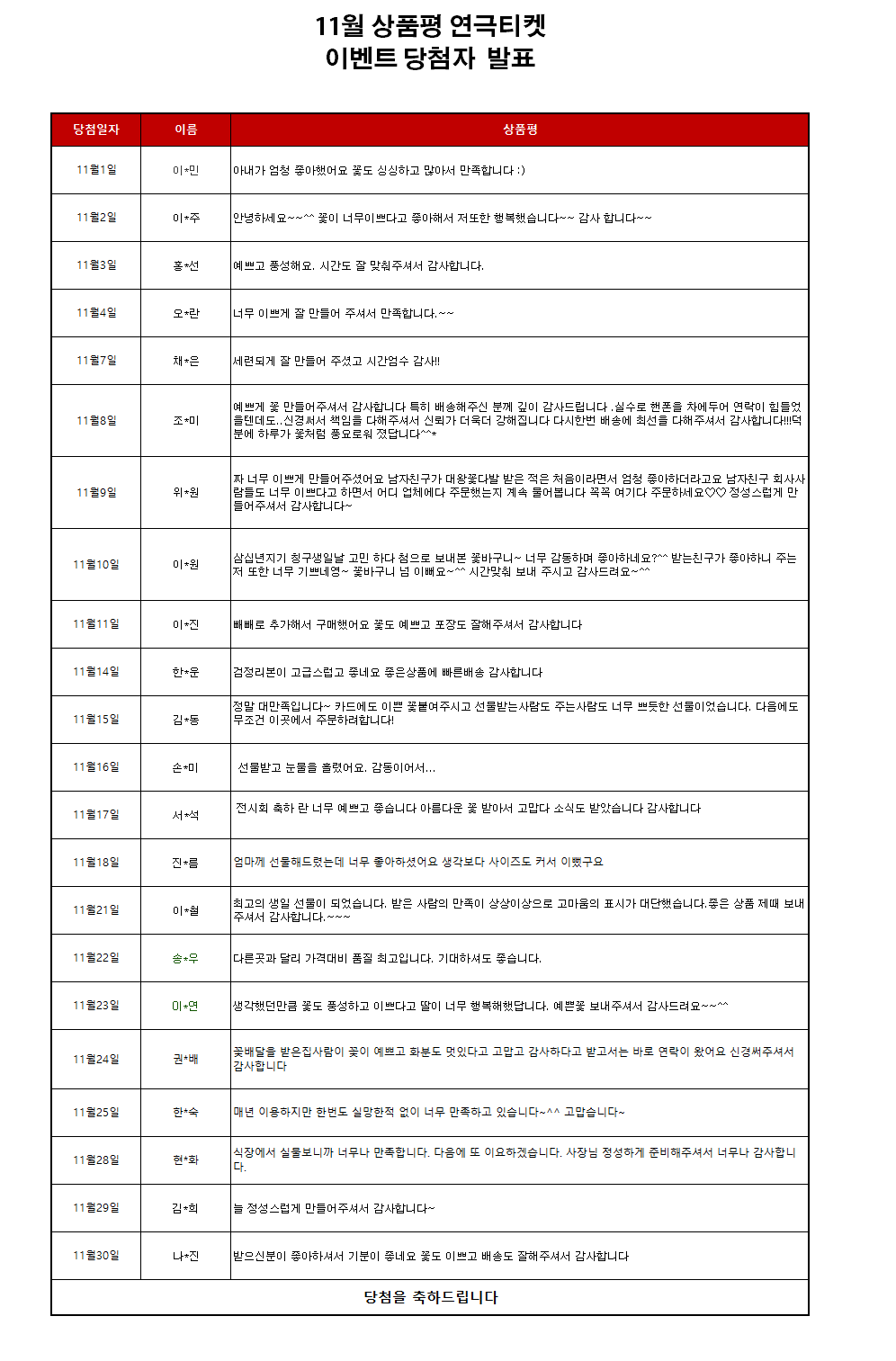 title : 2022년 11월 상품평 연극티켓 이벤트 [당첨자 발표]
