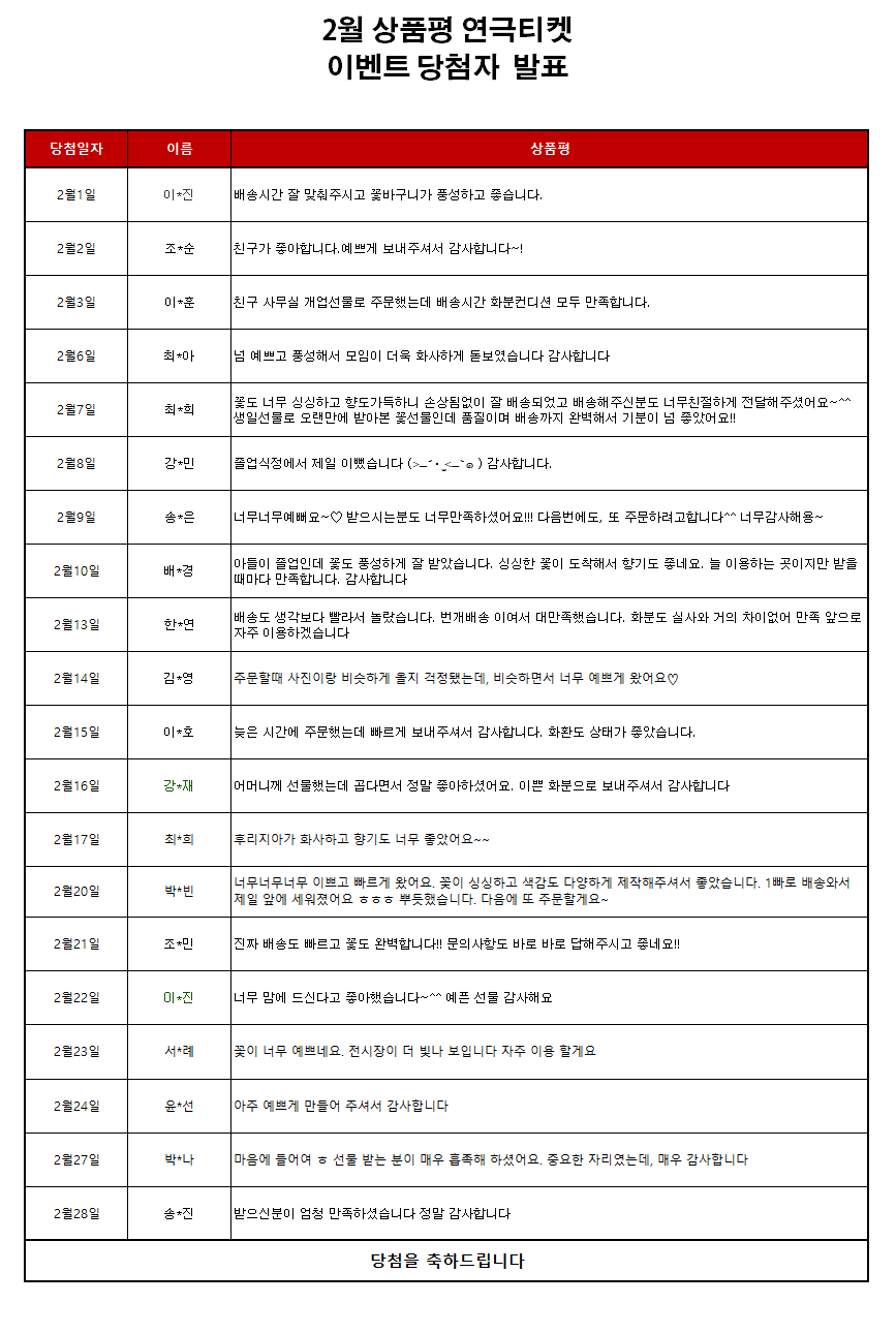 title : 2023년 2월 상품평 연극티켓 이벤트 [당첨자 발표]