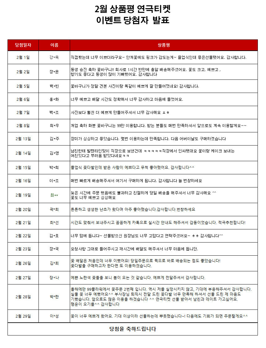title : 2024년 2월 상품평 연극티켓 이벤트 [당첨자 발표]