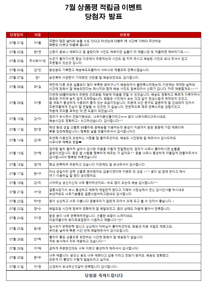 title : 2025년 7월 상품평 적립금 이벤트 [당첨자 발표]