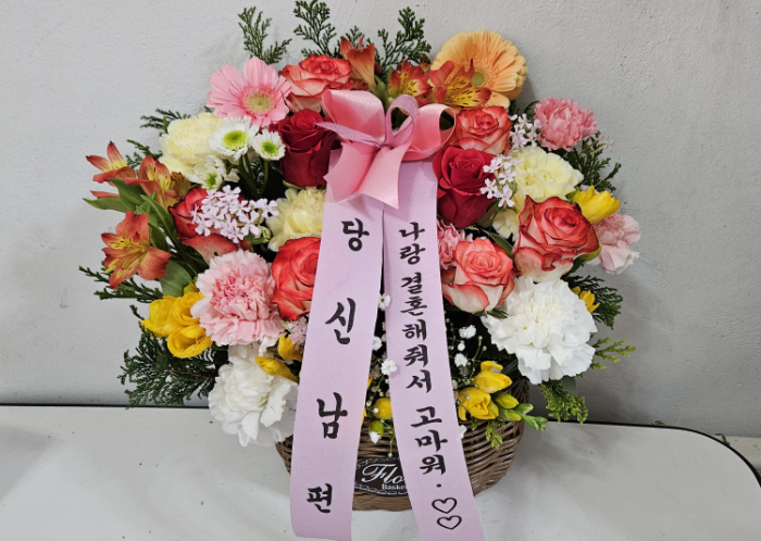 소중한 후기 감사합니다! 아내분께서 감동하셨다니 저희도 정말 기쁩니다. "나랑 결혼해줘서 고마워"라는 진심 어린 메시지가 예쁜 꽃바구니와 함께 잘 전달된 것 같아 다행입니다. 두 분의 기념일이 더욱 행복한 기억이 되셨길 바라며, 앞으로도 두 분의 앞날에 늘 사랑과 행복이 가득하시길 진심으로 기원하겠습니다.