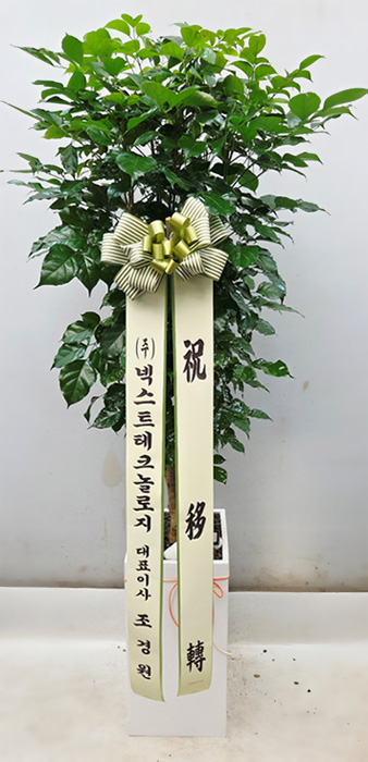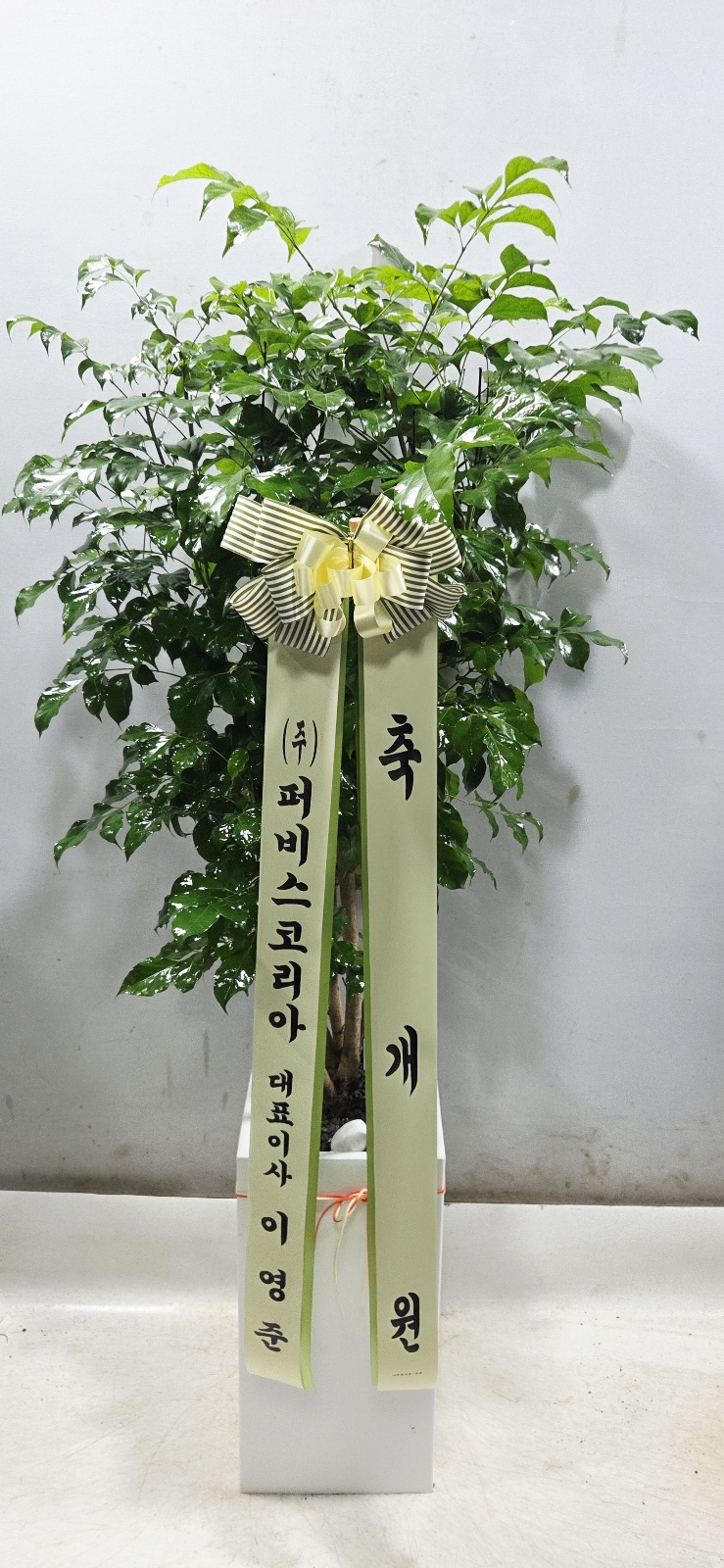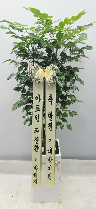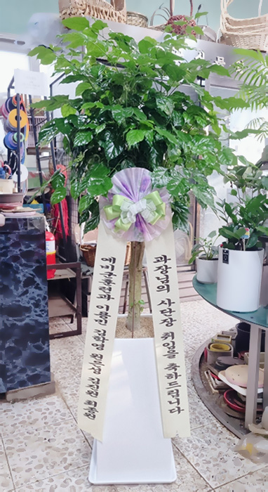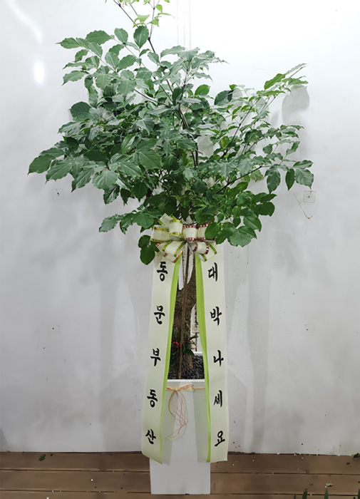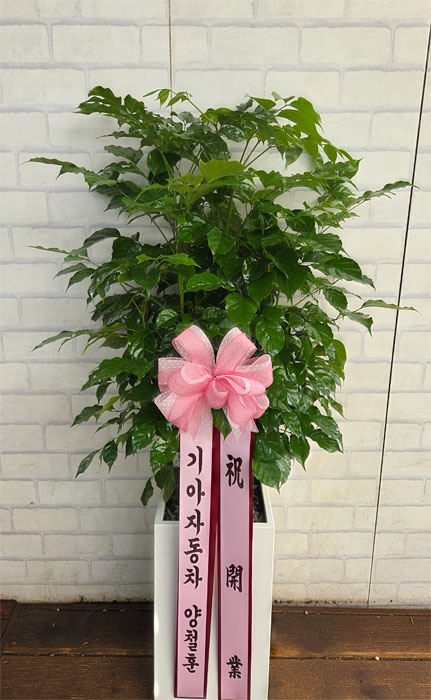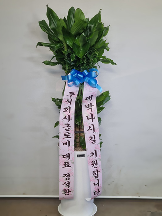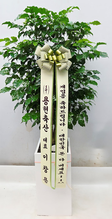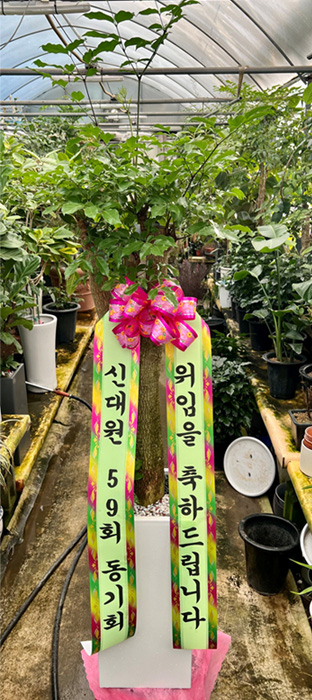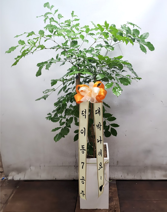 행복나무, 계절 초화, 축하 메세지 리본 또는 카드.