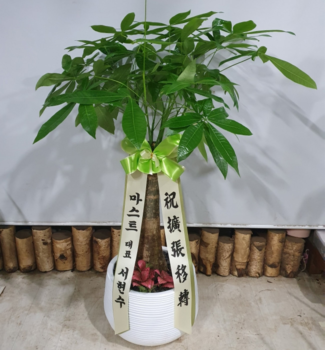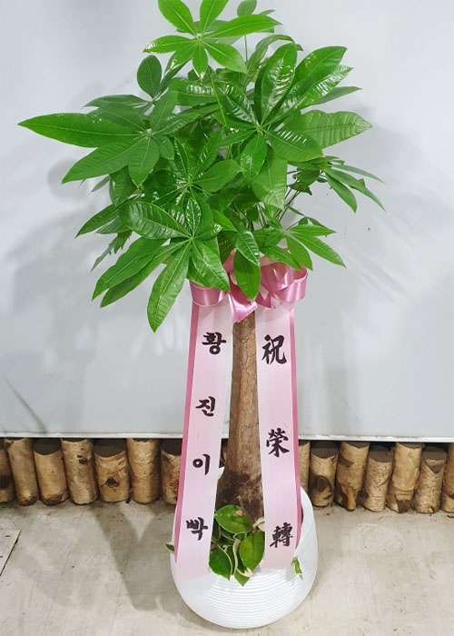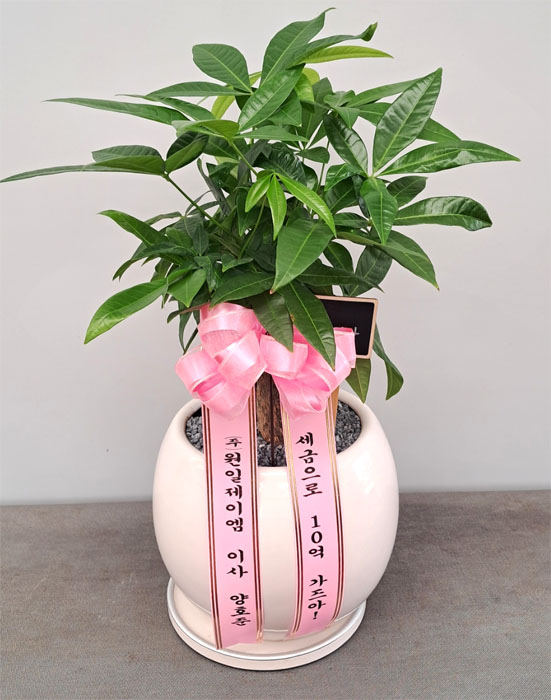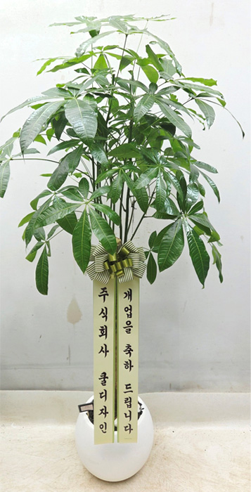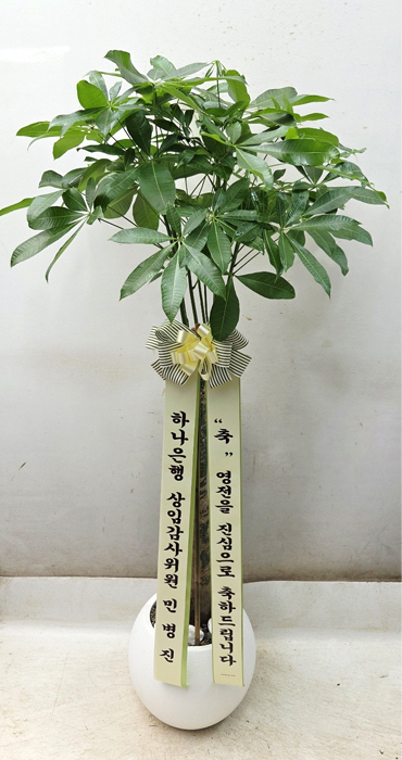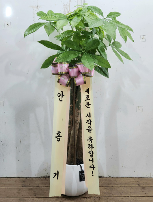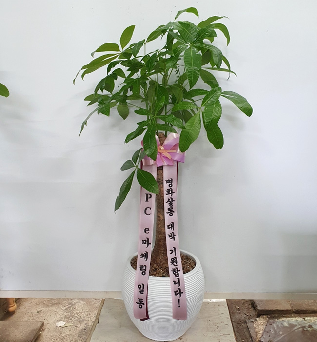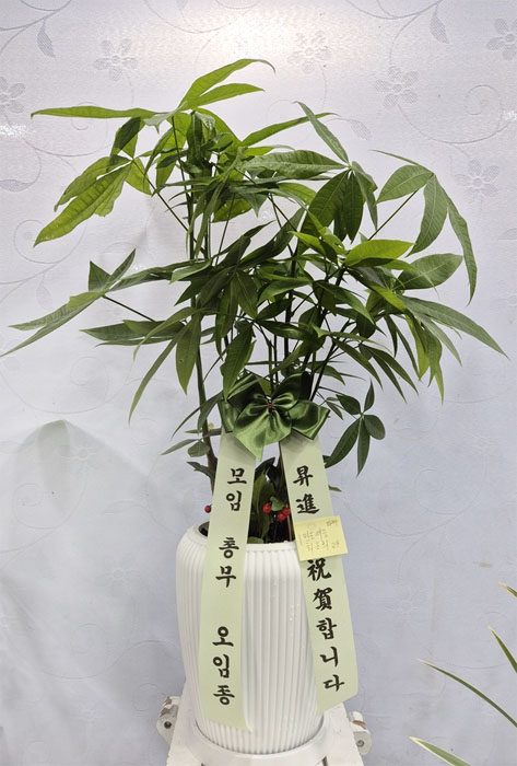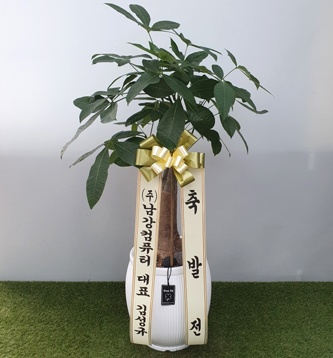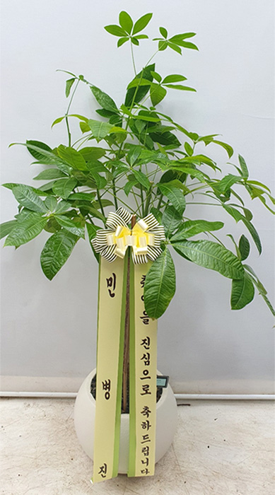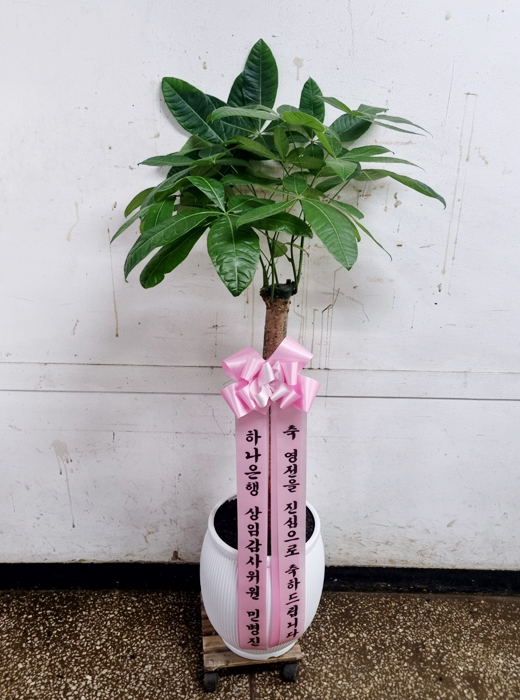 파키라, 계절초화, 축하 메세지 리본 또는 카드.