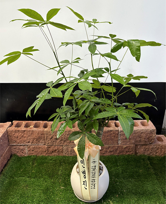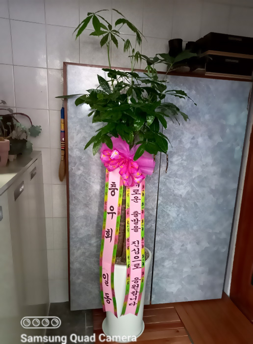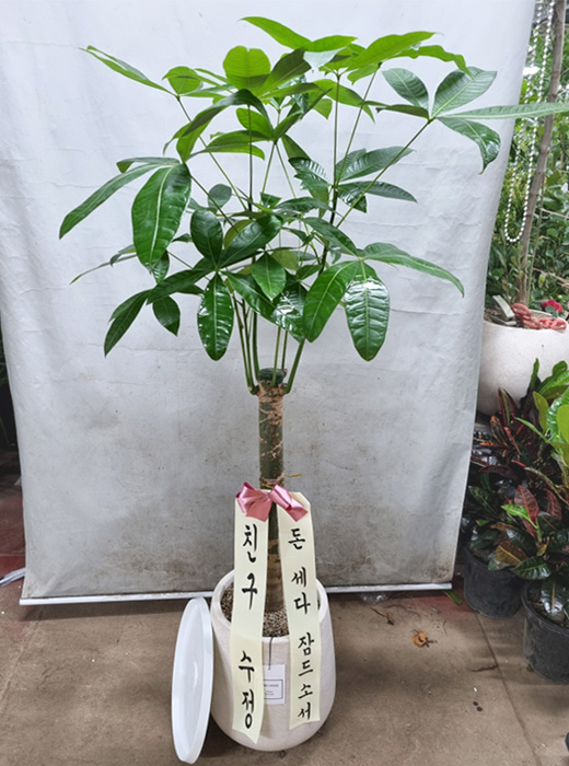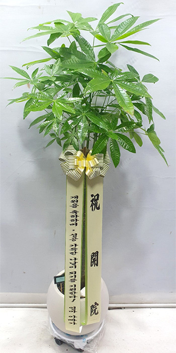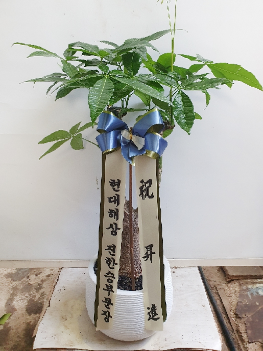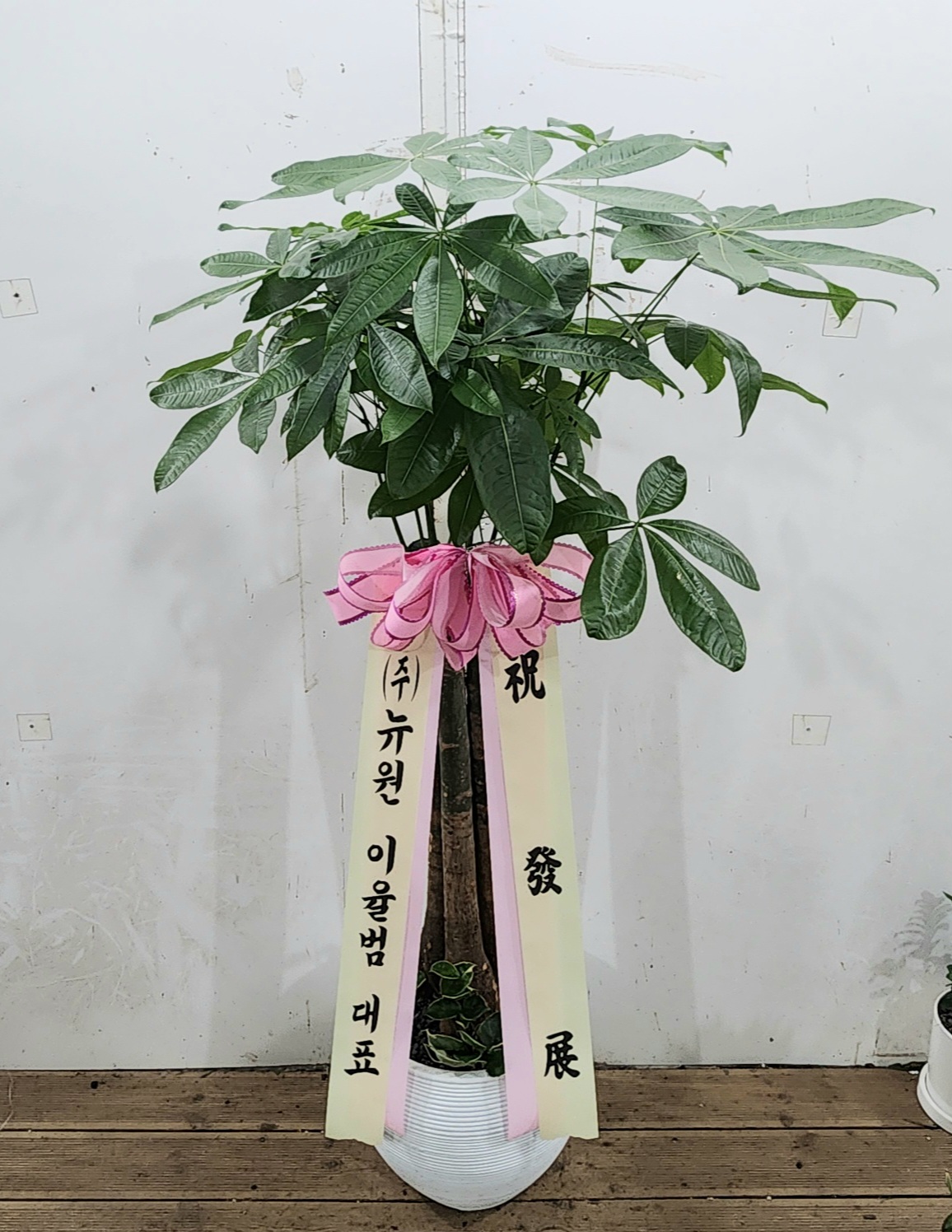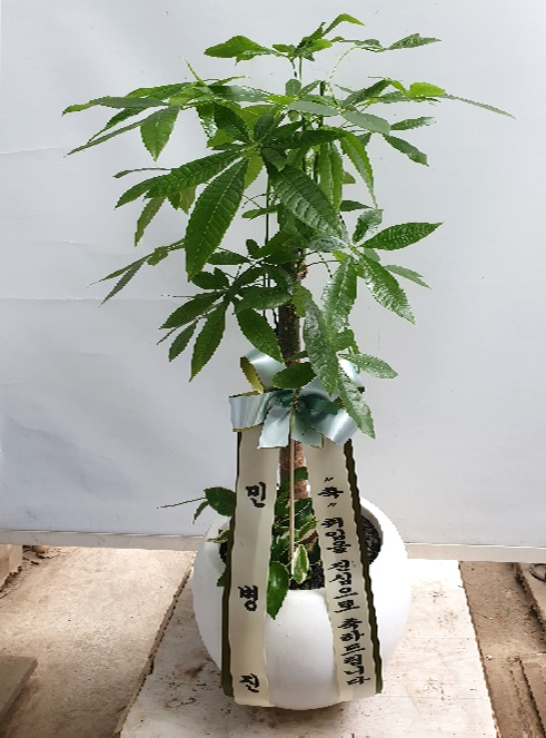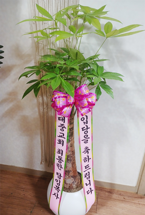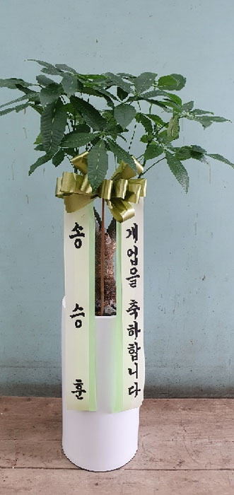 파키라, 계절초화, 축하 메세지 리본 또는 카드.