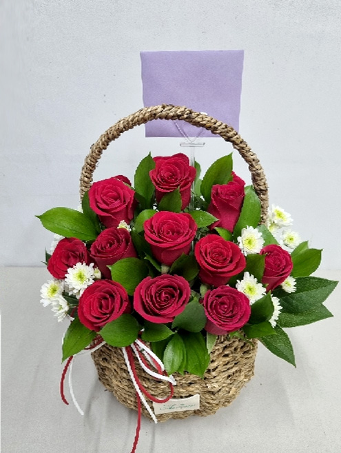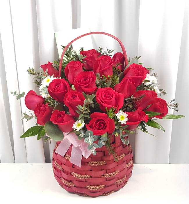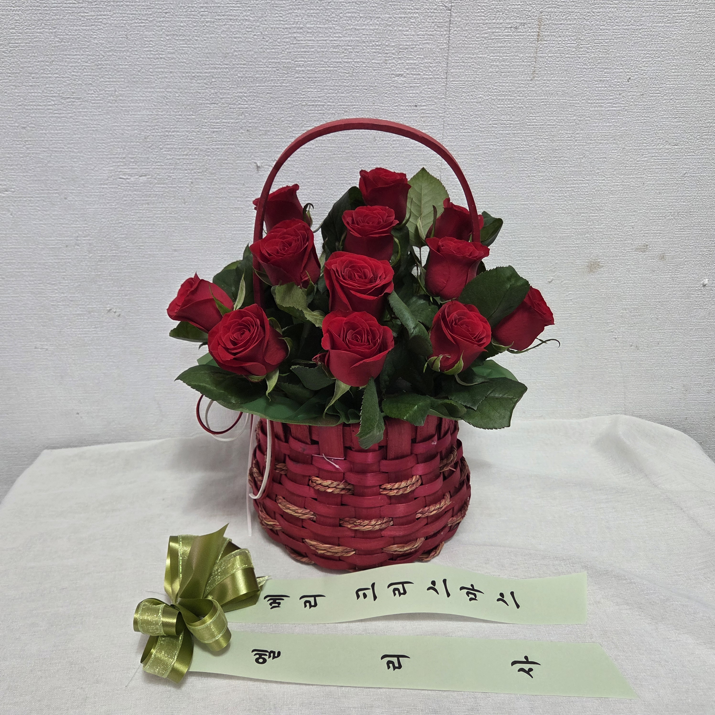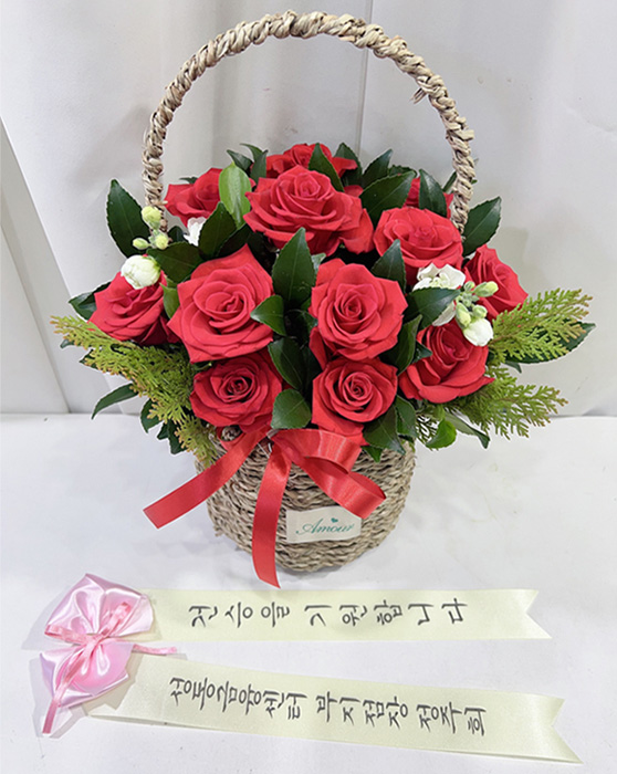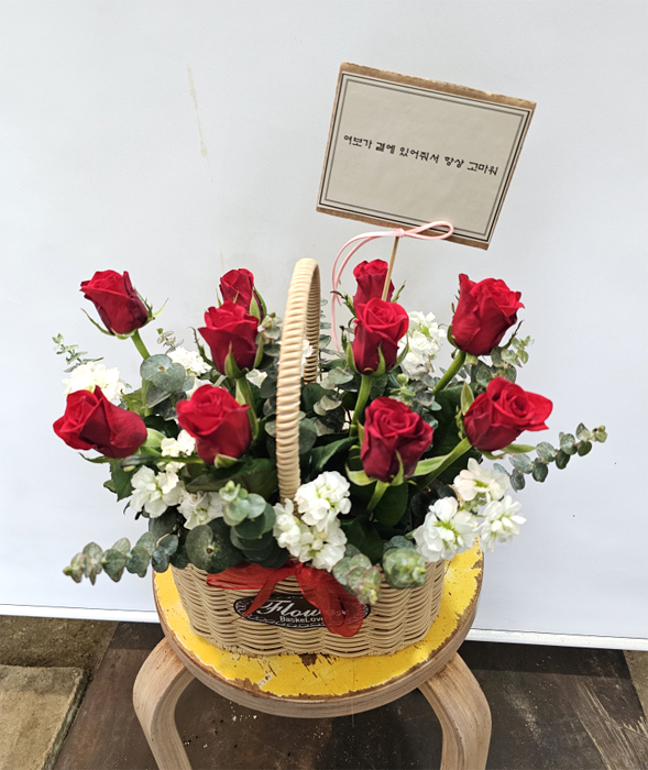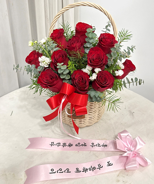 계절꽃, 계절 그린소재, 수제바구니, 리본 또는 카드.